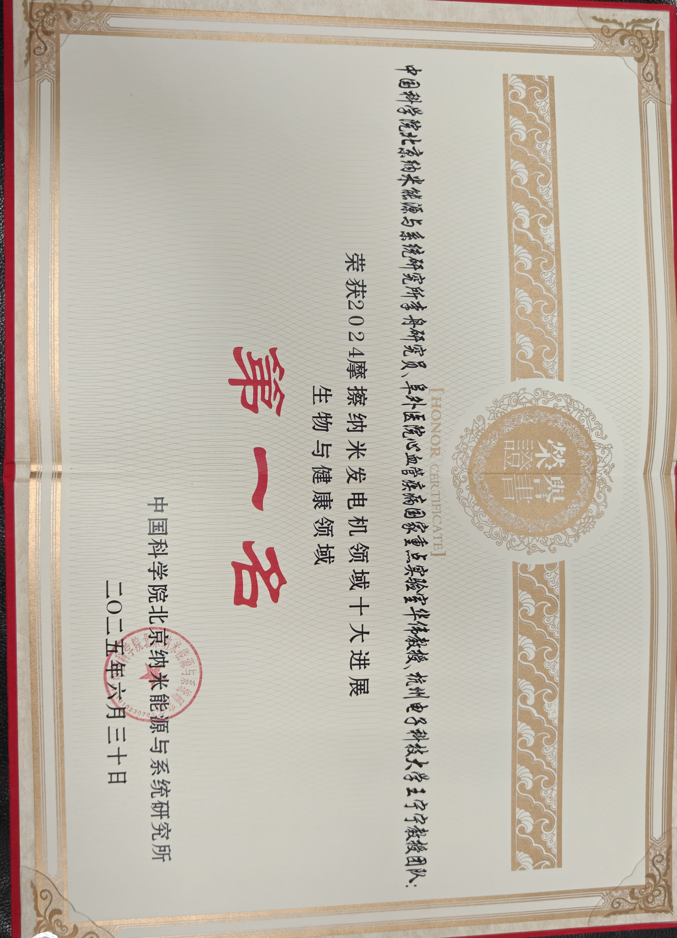 祝贺NBL课题组自供能无导线心脏起搏器研究成果荣获【摩擦纳米发电机领域2024年度十大进展】 生物与健康领域 第 一 名祝贺NBL课题组自供能无导线心脏起搏器研究成果荣获【摩擦纳米发电机领域2024年度十大进展】 生物与健康领域 第 一 名 据悉本次评选活动围绕【表彰本领域内年度最具影响力的研究进展】和【推动学术交流与技术创新,促进领域发展】两大核心目标展开,旨在推动本领域的学术进步与技术创新,促进学科繁荣发展。 在摩擦纳米发电机5大领域中,共94篇研究性文章受邀参与2024年度“十大评选”。最终,11项优秀成果荣膺2024年度“摩擦纳米发电机领域十大研究进展”(微纳能源领域因总分相同,两篇文章并列第二名)。