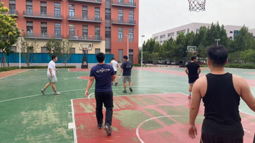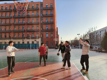 球场上,队员们攻防有序,配合默契。在这片球场上,既有拼尽全力的积极防守,也有不顾一切的突破决心,也有来自队友的敏锐策应,更有队员高高跃起,将篮球精准投出,每一次奔跑与跳跃都凝聚着汗水与专注。晴朗的秋日晴空下,红绿相间的球场与队员们矫健的身影交相辉映,定格下无数精彩瞬间。