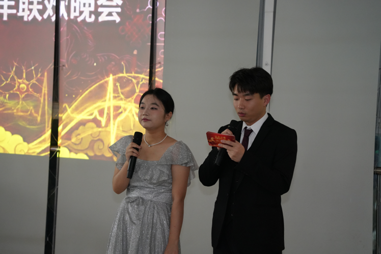 晚会在两位主持人热情洋溢的开场白中拉开序幕。伴随着暖场视频中闪现的一个个科研日常、一次次团队协作的温馨画面,大家共同回味了过去一年里携手前行的点点滴滴。 开场舞《高雅人士》以灵动活泼的节奏点燃全场,七位表演者化身“马达加斯加的小企鹅”,用幽默而富有张力的舞步瞬间拉近了彼此的距离;“我们都是追梦人”——这句熟悉的旋律在晚会中段响起,由课题组新生代表联袂献唱。他们用清澈而坚定的嗓音,唱出了每一位科研学子心底的共鸣:在实验室的日夜中追光,在数据的海洋里寻梦。