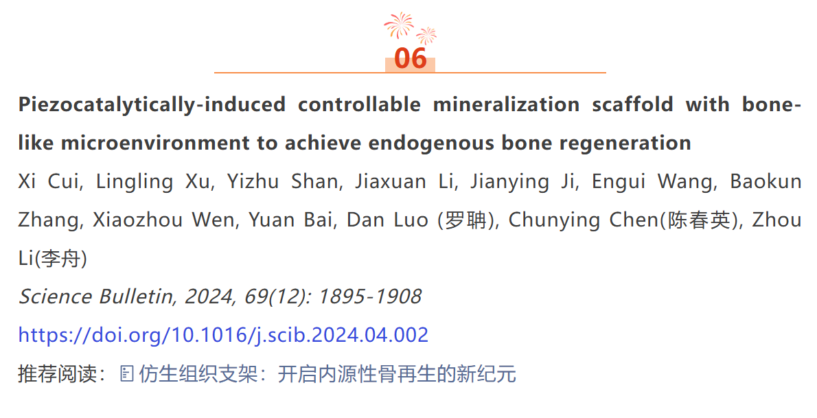 再创佳绩!课题组两篇论文分获《科学通报》《Science Bulletin》年度重磅荣誉高质量学术论文是提升期刊影响力的核心基石与源头活水。依据《〈科学通报〉优秀论文评选办法》和《Science Bulletin 高影响力文章评选办法》,经综合考评论文学术质量、科学影响力及社会影响力等多项指标,《科学通报》与 Science Bulletin 分别评选出 2025 年度 “优秀论文” 24 篇、“高影响力论文” 17 篇。我课题组论文《物理生物医学 —— 原创交叉研究的新领域》获评《科学通报》2025 年度 “优秀论文”,《Piezocatalytically-induced controllable mineralization scaffold with bone-like microenvironment to achieve endogenous bone regeneration》获评 Science Bulletin 2025 年度 “高影响力论文”。 原文链接:https://mp.weixin.qq.com/s/b-iA3HYmkk9zQIUKg7veZA https://mp.weixin.qq.com/s/n1p307Ub3-T97ZoibR741g